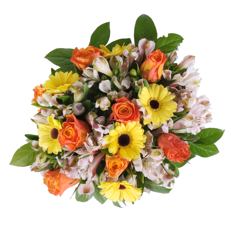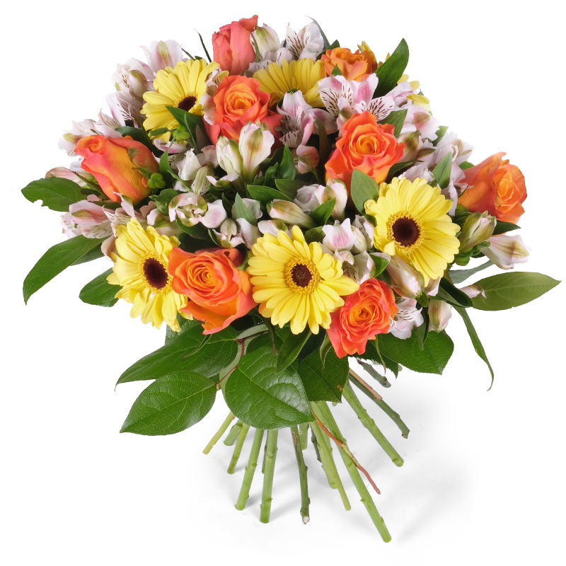Obfitość róż, gerber i alstromerii w otoczeniu świeżych, dużych liści sprawia, że kompozycja prezentuje się luksusowo i reprezentacyjnie. Doskonały wybór, gdy chcesz pokazać szacunek i podziw. To inwestycja w czyjś uśmiech!