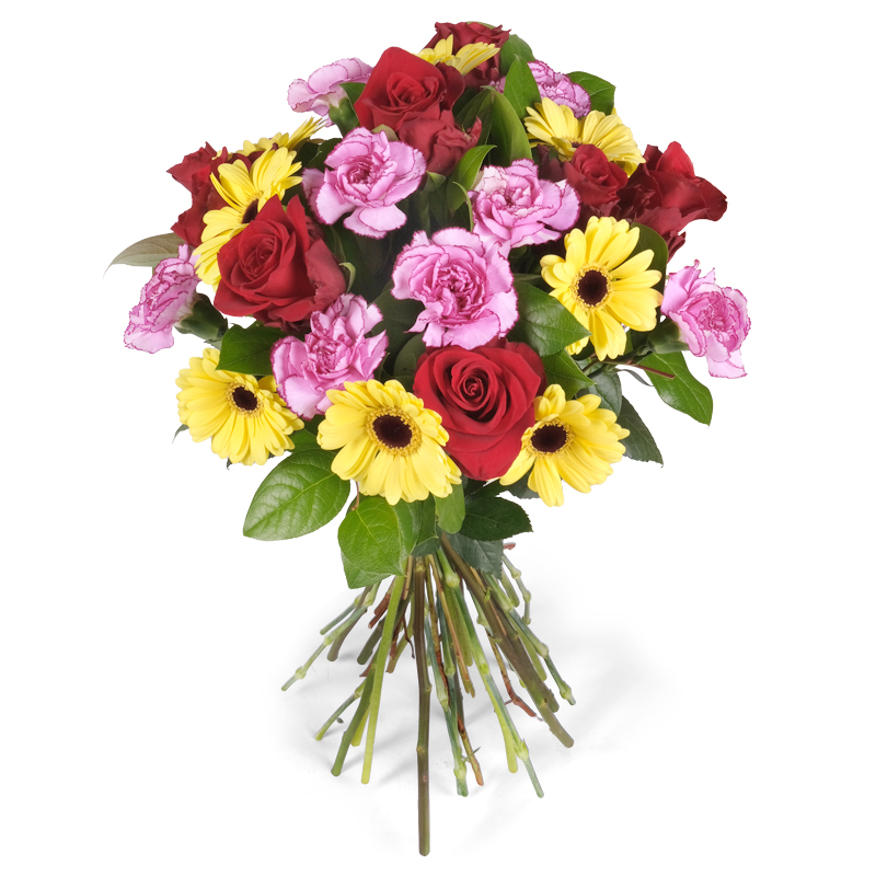 Ten bukiet to doskonały wybór, gdy chcesz sprawić komuś przyjemność. Róże, gerbery i goździki tworzą spójną, elegancką kompozycję. Wyraża wdzięczność, radość i serdeczność. Idealny prezent dla bliskiej osoby. To połączenie klasy i świeżości. Spodoba się nawet najbardziej wymagającej osobie!